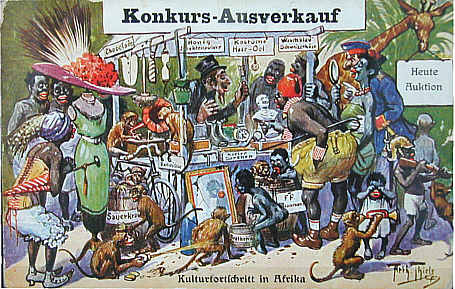"Kulturfortschritt in Afrika" bedeutet das Eindringen der jüdischen Kleinhändler auch in die Bereiche des Kolonialismus, wobei die Kritik darin besteht, dass dort nutzloser Krempel angeboten wird.