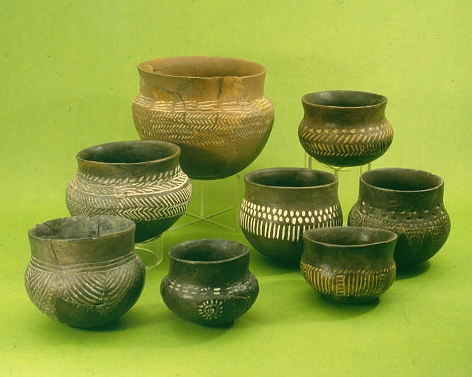 Einstichen und Stempeleindrücken. Typische Gefäßformen sind hohe