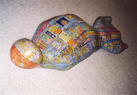 Pappmaché, Bleistift, Farbtusche