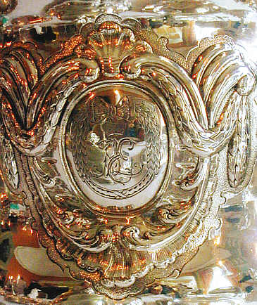 Monogramm der Kurfürstin Elisabeth Augusta auf dem Weinkühler |