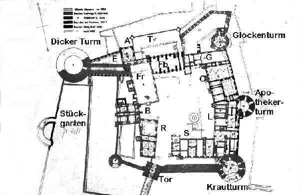 Stückgarten B Herrentafelstubenbau (sog.Bibliotheksbau) Fb Friedrichsbau L Ludwigsbau