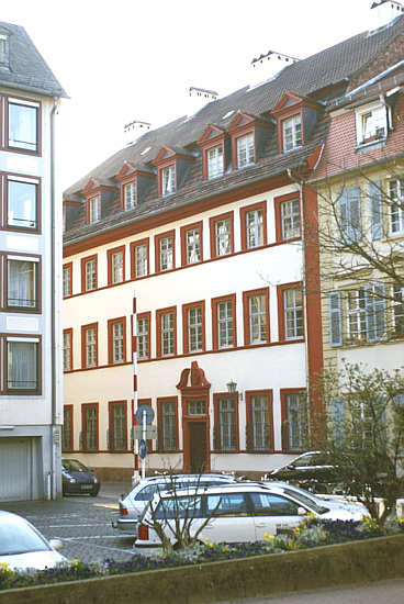 Dreigeschossiges Palais mit 12 Achsen und zwei Portalen, von denen das östliche neben dem Familienwappen das Monogramm des Bauherrn, des Medizinprofessors Daniel Nebel, mit der Jahreszahl 1710 trägt. Die Inschrift „C.D. N. 16“ über dem Wappen bezieht sich auf den Vater des Bauherrn Conrad Daniel Nebel und stammt von der ehemaligen, zerstörten, Hofapotheke. Im Garten zwei barocke, in jüngster Vergangenheit vor dem Abriss bewahrte und sanierte Gartenpavillons. |