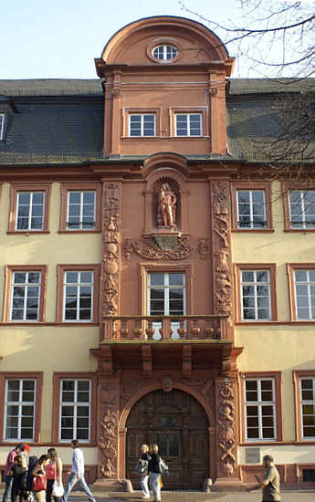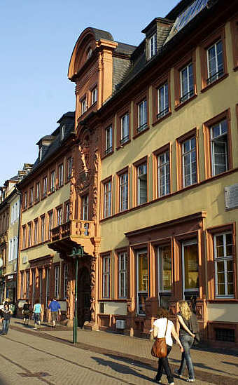 Nachdem Kurfürst Johann Wilhelm den „Englischen Hof“ in der Kettengasse den Venningen abgekauft hatte, erhielt der Oberzeugmeister von Venningen 1706 vom Kurfürsten einen Platz in der Vorstadt, auf dem, dem Dominikanerkloster gegenüber, das Gasthaus zum Löwen gestanden hatte. Hier ließ Venningen 1707 – 1708 von Johann Adam Breunig ein stattliches Barockpalais errichten. Der 15-achsige Bau wird durch eine breite Mittelachse mit reichem Skulpturenschmuck betont. Im Erdgeschoss öffnet sich eine breite Hofeinfahrt, deren Rundbogen einen Faunkopf im Schlussstein trägt. Darüber erlaubt im 1. Obergeschoss ein Balkon mit einer Säulchenbalustrade einen Austritt, im 2. Obergeschoss steht in einer Nische ein Standbild des adligen Bauherrn in barocker Prunkrüstung von der Hand des Bildhauers Heinrich Charrasky, darunter eine Kartusche mit der Inschrift „Eberhard Friderich von Veningen General Leutnant und Oberst Jaegermeister Anno MDCCVII“. Der gesamte Mittelrisalit ist durch skulptierte Pilaster mit Jagdtrophäen und -geräten sowie musischen und wissenschaftlichen Instrumenten gerahmt. Rechts finden sich Fanfaren, Harnisch, Kanone und anderes Kriegsgerät, links eine Farbenpalette, ein Buch, Musikinstrumente sowie andere Allegorien auf musische Interessen. Der Mittelrisalit wird von einem Zwerchhaus mit aufgesetztem Segmentgiebel mit eingelassenem Oculus bekrönt. Zwerchhaus und Segmentgiebel gehen evtl. auf das Vorbild des kurz zuvor errichteten Rathauses zurück und werden auch an anderen Bauten sowie später im Jugendstil wieder aufgegriffen. Die Fenster mit profilierten Ohrengewänden sind im Sockel- und ersten Obergeschoss durch Sohlbankgesimse miteinander verbunden, was der Fassade eine starke horizontale Gliederung verschafft. Die Abnahme der Höhe nach oben hin entspricht der üblichen Minderung der Stockwerkshöhe. 1797 bis 1819 wurde unter dem Zeichen „Gasthaus zum Riesen“ die Gasthaus-Tradition wieder aufgenommen, wobei die Figur des Bauherrn Pate stand. Die Außenwirkung des Baus litt später unter dem Einbrechen der beiden Schaufenstergruppen.