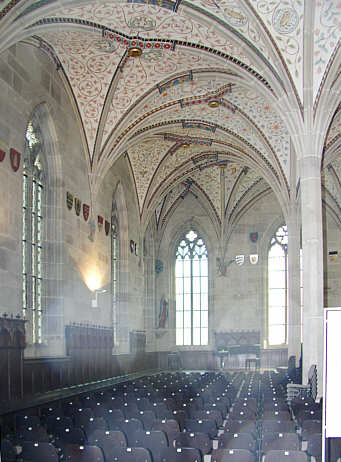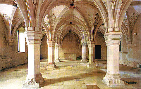 Das Laienrefektorium wurde 1530 als dreischiffige Halle errichtet. Stämmige Säulen tragen ein spätgotisches Kreuzrippengewölbe.