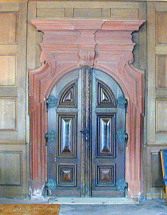 Barockes Eingangsportal mit Flügeltür aus Nussbaum-Wurzelfurnier von 1720