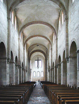 Romanische Pfeilerbasilika mit Kreuzgratgewölbe im