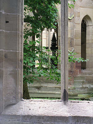 Maulbronn, Blick vom Kreuzgang zum Brunnen im Brunnenhaus