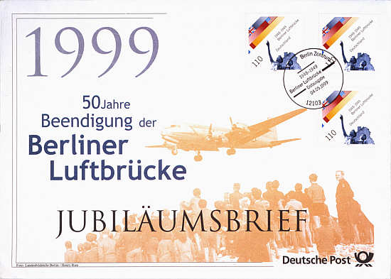 Die Deutsche Post gibt am 4. Mai 1999 einen Jubiläumsbrief heraus. Die Sondermarken zeigen die Fahnen der an der Luftbrücke beteiligten Alliierten.