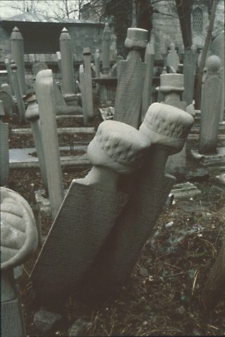 Die in den Tälern und an den Hängen außerhalb der Stadt angelegten Friedhöfe waren ein beliebtes Ausflugsziel. Die Atmosphäre der Melancholie, des Verfalls und der Verlassenheit wurde noch dadurch verstärkt, dass die Grabsteine kreuz und quer durcheinander standen, ohne erkennbares Ordnungsprinzip. Die Särge der Männer krönte traditionell ein in Stein gemeißelter Turban, während Frauensärge mit Blumen oder Tüchern verziert wurden.
