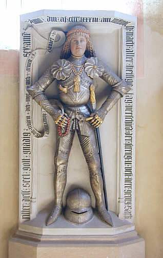 Nach der Körperhaltung des Dargestellten zu urteilen, handelt es sich nicht um einen später aufgestellte Deckplatte eines Hochgrabs, sondern um ein für die Aufstellung gearbeitetes Epitaph, ein Grab-Denkmal für den an anderer Stelle der Kirche bestatteten Verstorbenen.