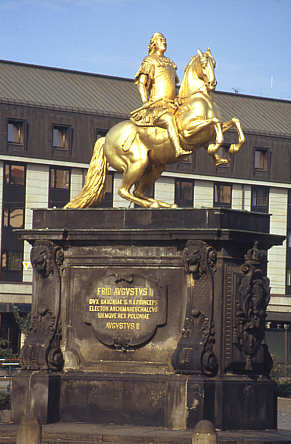 Denkmal des Kurfürsten August d. Starken, König von Polen, 1736, der sog. "Goldene Reiter" Dresden, Neustädter Markt