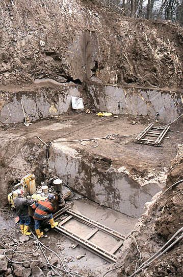 Zur Gewinnung authentischen Steinmaterials werden auch alte, stillgelegte Steinbrüche wieder kurzzeitig erschlossen. Der hier gewonnene Stein ist im Idealfall derselbe, mit dem von Hunderten von Jahren die Kirchen gebaut wurden.