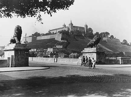 Festung Marienberg mit Löwenbrücke Badische Bahnlinie Heidelberg - Würzburg |