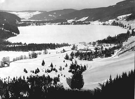 Blick von Süden, im Hintergrund der Ort Badische Dreiseenbahn Freiburg - Seebruck |