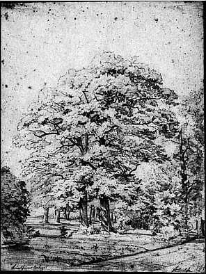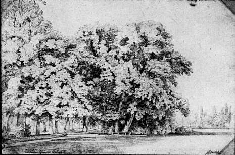 Alte Eichen am Weg von Karlsruhe nach Beiertheim, vor 1839