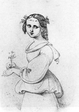 Des "närrischen Malers" Geliebte Mine, Bleistiftzeichnung um 1835
