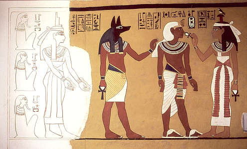 peinture dans la chambre funéraire Toutankhamon entre la déesse Hathor et le dieu Anoubis