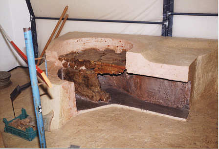 Aufbau eines römischen Töpferofens mit Feuerkanal, Feuerkammer und Feuerplatte