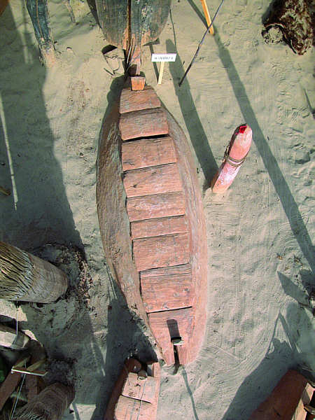 Die Sargform wirkt wie ein umgedrehtes Boot, das über den