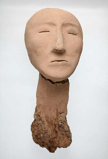 Die Gesichtszüge des wie eine Maske modellierten Kopfes