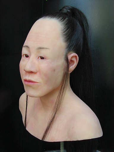 Rekonstruktion einer hunnischen Frau im Erwachsenenalter mit künstlicher Schädeldeformation.