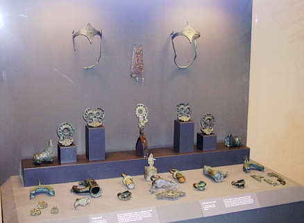 außergewöhnliches Wagengrab (Hügelgrab) mit Wagen- und Pferdegeschirrteilen, vermutlichbei der unsachgemäßen Bergung im 19. Jh. stark in Mitleidenschaft gezogen.