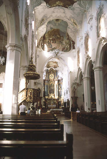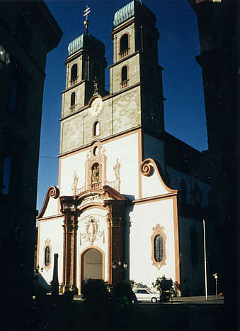 Nach schweren Brandschäden durch französischen Truppen 1678 wurde die Kirche unter der Leitung von Michael Widemann aus Elchingen erstmals barockisiert. In diesem Zusammenhang wurden die Türme wieder aufgebaut und erhielten ihre barocken Zwiebelhelme. Es entstanden weiterhin die Vorhalle und das Kapellenpaar, das seitlich des Portals die Front abschließt. Ebenso wurde das Langhaus durch die Engels- und die Apostelkapelle erweitert.