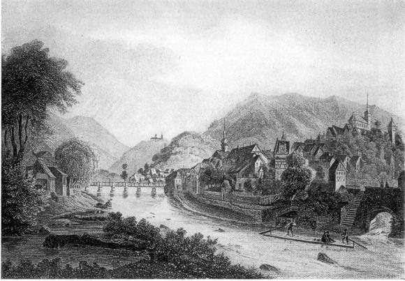 Die Gernsbacher Oberstadt von Süden - "nach einem alten Stich"