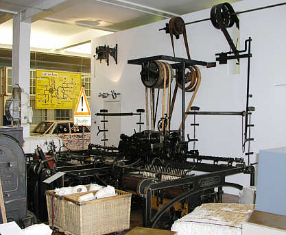Baumwoll-Spinnmaschine (Selfaktor), Elsässische Maschinenbau-Gesellschaft Mühlhausen, 1906 Leihgabe des Deutschen Museums München