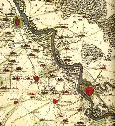 Christian Mayer: Charta Palatina, 1776 - 1785Detail: Der Rhein zwischen Mannheimm und Worms |