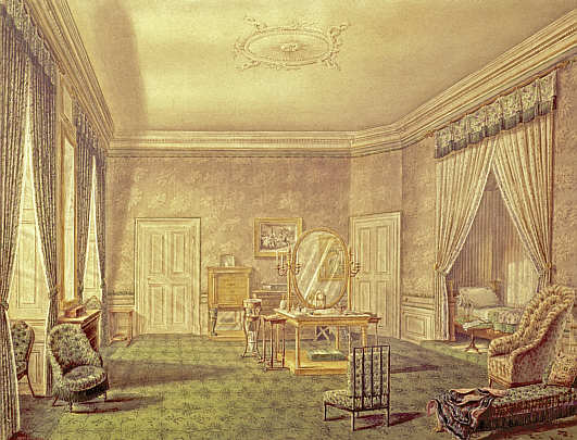 Schlafzimmer im Appartement der Großherzogin Stéphanie im Mannheimer Schloss, Aquarell von Wilhelm Dünckel, 1860. Bild: Landesmedienzentrum BW