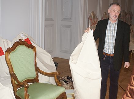 Dr. Wolfgang Wiese mit einem restaurierten Rokoko-Sessel.