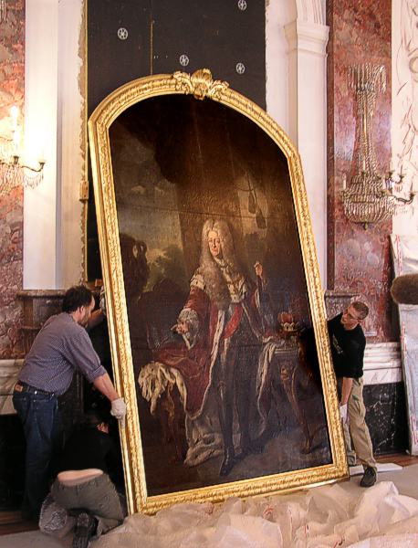 Bild von der Aufhängung des Gemäldes nach Abschluss der Bauarbeiten an der Bel Etage.