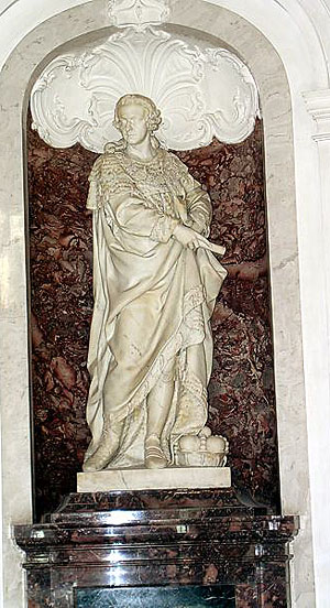 Unten: Peter Anton von Verschaffelt: Standbild des Kurfürsten Carl Theodor (links) und der Kurfürstin Elisabeth Auguste als Minerva (rechts) . Ende 1750er Jahre
