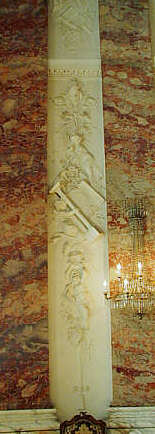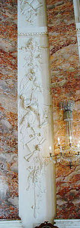Die Stuckornamente zwischen den Pilastern versinnbildlichen Kunst und Wissenschaft.