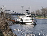 Polizeiboot WSP 15 und etwas flußabwärts die Peniche "Willi" und