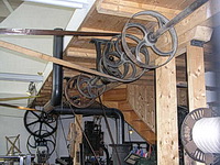 bis zur Transmissionsanlage, die diese rotierende Bewegung