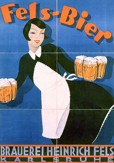 Werbeplakat der Brauerei Heinrich Fels aus Karlsruhe, 1920.