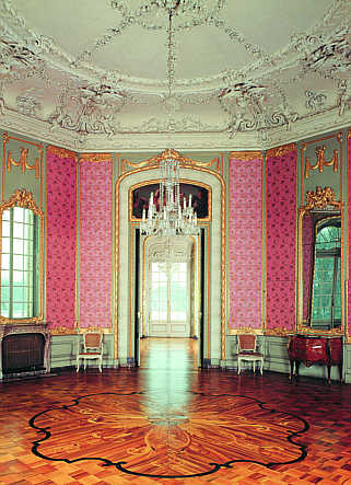 Sog. Schlafzimmer der Kurfürstin, nach Osten ausgerichtet Blick durch den Gartensaal in den Garten