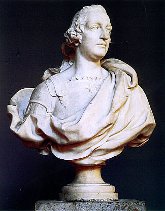 | Peter Anton von Verschaffelt: Büste des Pfalzgrafen Friedrich Michael von Zweibrücken, um 1758/59 Die Marmorbüste des Pfalzgrafen stellt ihn im antiken Schuppenpanzer dar, über den er den Feldherrenmantel als Zeichen seines militärischen Rangs trägt. |