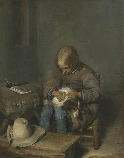 Gerard Terborch Ein Knabe floht seinen Hund, um 1655