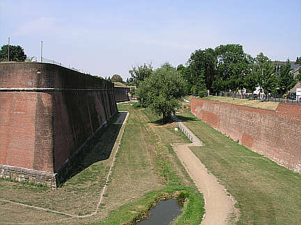 Blick in den Festungsgraben, links die südöstliche Bastion