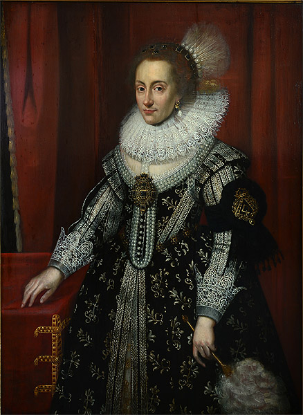 Unten: M. J. van Mierevelt: Porträt der Amalia von Solms, um 1640.