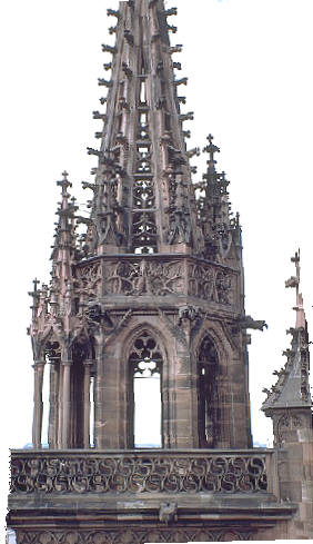 Die Münstertürme wurden nach dem Erdbeben 1356 neu errichtet. Hier der westliche Turm, von der Plattform des östlichen Turms aus gesehen