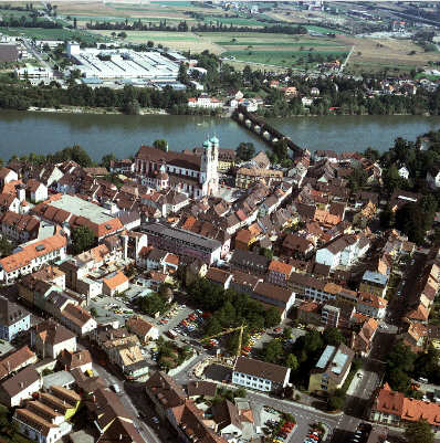 dahinter der Rhein mit der gedeckten Brücke zum Schweizer