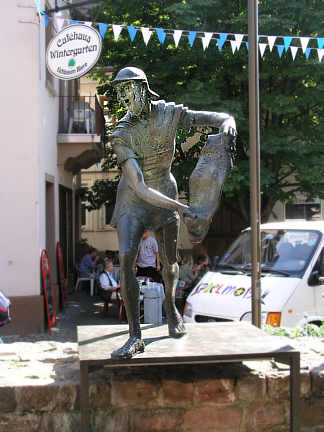 Auf der rekonstruierten Kastellmauer postiert: Der Bürger, der angesichts der streitenden Parteien auf seine bürgerlichen Rechte verweist.