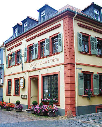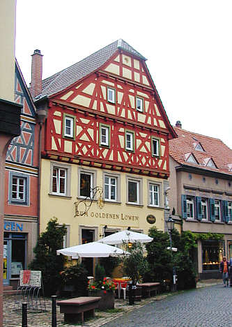 Stadthaus mit zwei steinernen Stockwerken, einem Voll- und
