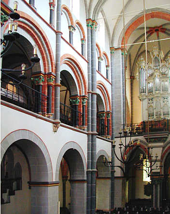 aber trotz dieser Vorbilder romanische Formen bei. Sie bildet eine 3-schiffige romanische Basilika mit je einem Querhaus im Westen und