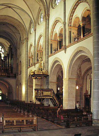 erhaltenen Krypta und dem stehengebliebenen Westwerk das