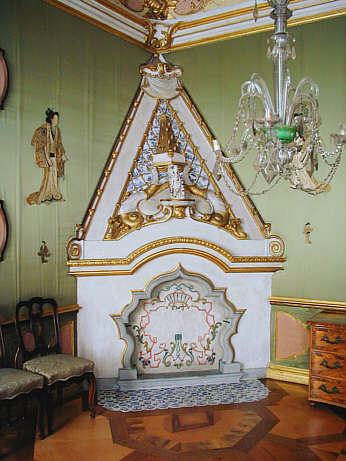 Appartement des Erbprinzen Kamin mit blau-weißen Fayencekacheln im Aufsatz
